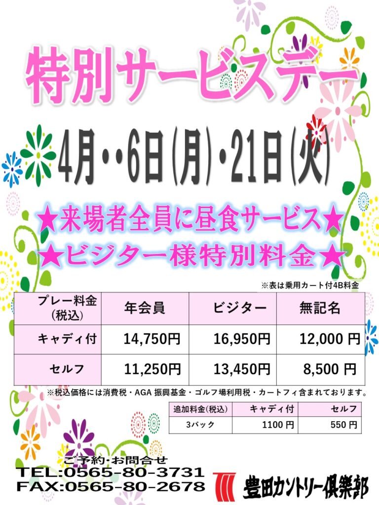 2026年4月6日(月) 特別サービスデー